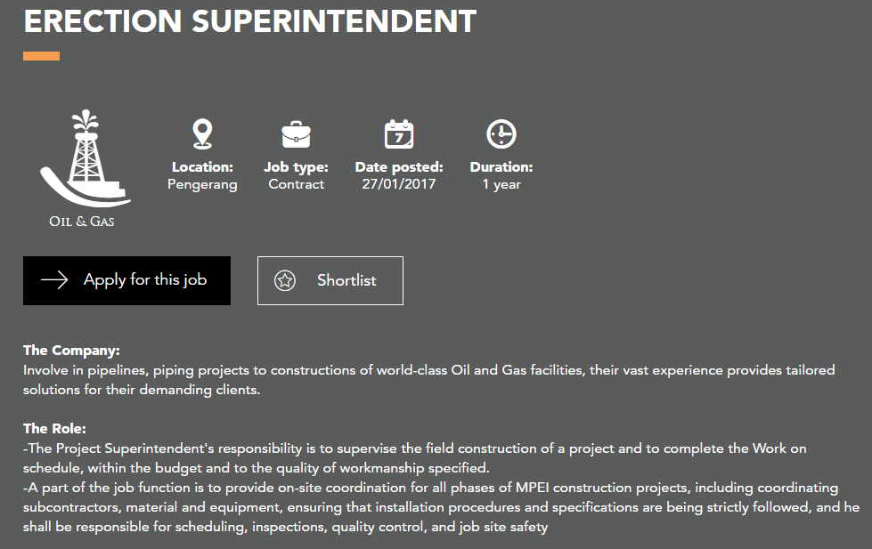 INSTALLATION SUPERVISOR (PIPING) - Pengerang